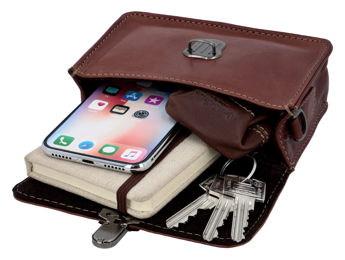 Im Hauptfach finden all die Essentials zuverlässig Platz, die du unterwegs auf Festivals, an einem lauen Spätsommerabend oder beim Kurztrip ans Meer immer ganz nah bei dir haben willst. Und dank der breiten Schlaufen auf der Rückseite der Gürteltasche kannst Du "Sarah" ganz einfach an deinem Lieblingsgürtel befestigen, während das Steckschloß dafür sorgt, dass all Deine Habseligkeiten dort bleiben, wo sie sind. So kannst du bequem Lippenstift, kleinen Geldbeutel, dein Handy und Schlüssel unterbingen. Du willst "Sarah" lieber um die Schulter hängen? Kein Problem! Du musst lediglich den passenden Lederriemen auf deine Größe einstellen und im Handumdrehen ist Sarah eine perfekt Mini Umhängetasche!