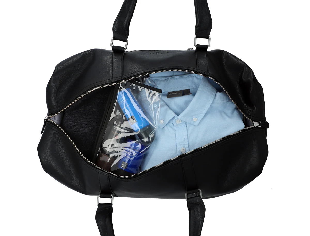 Eine schicke Reisetasche aus Leder mit wasserfestem Innenstoff und viel Platz