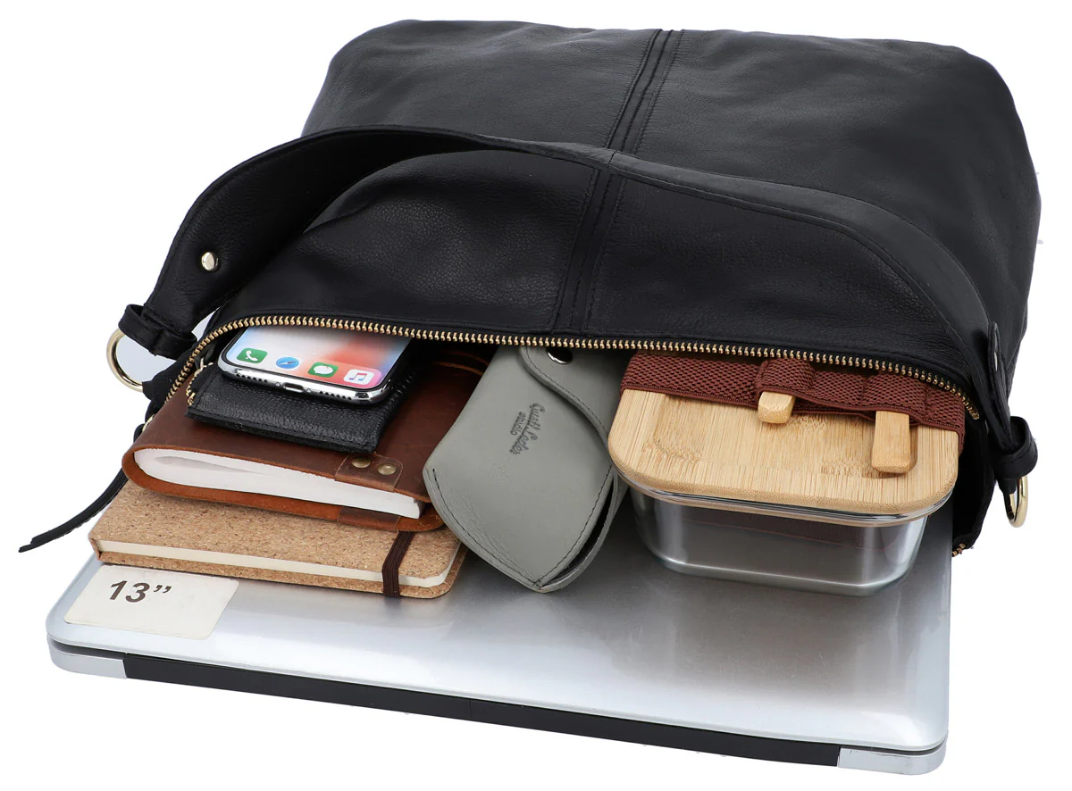 Du suchst einen klassischen Shopper, der Dich nicht im Regen stehen lässt? Dann ist „Hannah“ genau die Richtige für Dich. Diese mittelgroße Umhängetasche besteht aus hochwertigem, LWG-zertifiziertem Rindsleder in elegantem Schwarz. So liegst Du voll im Trend und hast dennoch durch das geräumige Innenfach genug Platz für alles, was Du bei einem Stadtbummel oder im Berufsalltag brauchst. Inspiriert vom urbanen Berliner Großstadt Flair vereint „Hannah“ Stil und Funktionalität.