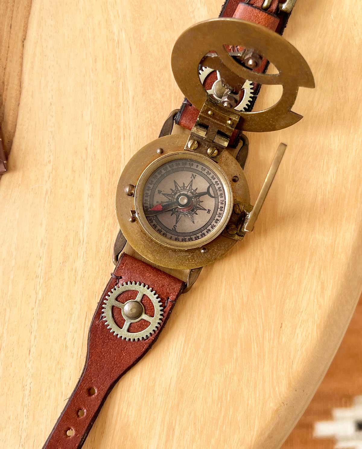 Zahnräder, Leder, Sonnenuhren, das erste woran du denkst ist Steampunk? Dann ist "Denise" die perfekte Uhr für dich! Der ganz besondere Vintagelook! Das robuste Armband aus Büffelleder ist perfekt, um die kleine Sonnenuhr Tag und Nacht bei dir zu haben. Als Sonnenuhr mit intergriertem Kompass kannst Du mit "Denise" die Uhrzeit bestimmen, wie es schon früher die alten Seefahrer getan haben. Das Armband aus Büffelleder ist sehr robust und stabil und hält den Kopf der Uhr sicher und fest.